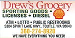 | Drew’s Grocery - 360/274-8920 Right in Toutle - 10 miles off I-5 on the Spirit Lake Highway. Shell Gas, diesel, full-line of groceries, video rentals. Since 1937 GPS: 5304 Spirit Lake highway |